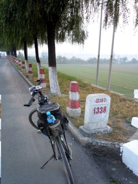 出发了,天气阴沉沉的,好像有下雨的意思,天虽是有点阴雾,但在我的眼里却也美得像蒙着面纱少女的微笑一样,甜蜜、美好,这样的天气这样的气温,正好适宜骑车。8点6分,骑行至朝阳镇,一路上遇到不少晨骑朝阳的车友,寒暄几句后继续前行。