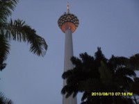 吉隆坡就这个比较出名。10号有一天时间在吉隆坡 先去看看他们的标志,但那天的天气不好 照片没拍多少、去了KLCC转了 感觉没什么可买的 一线买不起 二线品牌价钱和国内也没多少差别 不想增加行李重量所以什么也没买 看了看熟悉了下地形 问到了 领票的地点(商场里面很多做买卖的华人 随便找个华人问问都能马上告诉你)(如果实在不知道的 你就到塔的正前门 有喷泉的门口 从正前门进去左手边有个自动梯下到负一楼 那地方就是领票的 最好早上7;30分就到那排队)。。。 因为是下午去 基本没免费票领了,想着第二天就要去丁家奴了,几天后还有机会来就离开了 看看时间不晚 就步行沿街无目的的走,走了半小时 谁知被我撞到了一景点---吉隆坡电视塔。。呵呵 ~!!上去后才知道那是一景点。。。。本人可是没地图的哦! 就这么瞎转!!姐妹们出去玩最重要的就是不懂就问。。。