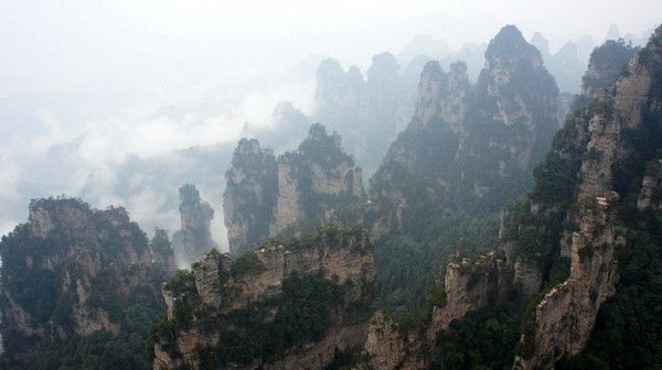 么都看不见白茫茫一片反而下面的袁/扬家界阴雨天才有可能出现云海,还可以错开刚进山的大堆旅游团(旅游团大多数从金边溪进天子山出)。后来发现这选泽太正确不过,天子山一路上游客都不多