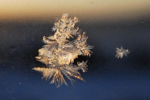 一觉醒来,天已初亮。原以为这地方天黑得早,会天亮得晚,看时间,才七点多点。爬起来第一眼看到的是窗户上的一朵小小的冰花,在初升阳光的映照下,显得晶莹剔透,冰清玉洁。