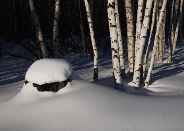 昨晚睡觉前,就有个计划,当太阳出来的时候,在雪地里照张光膀子相作留念。太阳出来了,我先在屋子里鼓足劲,然后一件一件脱得只剩下一条裤衩,因为女主人在的原因。。。呵呵。这张照片就不上传,只能描述:侧逆光,一辆独轮拉煤小车作前景,左后侧是一座牛棚,后面是一排木栏栅,中后景是几座屋顶堆满厚厚积雪的木刻楞屋,再往后就是雪山、树林。。。下午到了北极村,从中央新闻台才得知,当天早上八点,也就是我照光膀子相的时候,,是入冬以来漠河县城温度最低的时候,达到零下四十一点一度,而我所在的北红村比漠河县城更北,温度也应该更低。