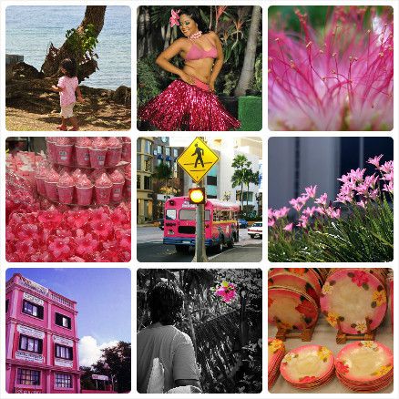 拿着零用钱奔跑在买糖路上的孩子、见到九重葛为之倾心驻足的过路人、随着音乐节拍舞动的舞蹈演员演绎着关岛之粉的纯真、动人与温柔;橱窗前争先竞开拥抱阳光的粉色花朵、清晨路边等着上学孩子的艳粉校车Bus、商店里琳琅满目的粉色手信与商品演绎着关岛之粉的神奇、可人与甜蜜。