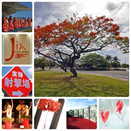 枝头树间自在舒展的红色花朵、傍晚海边围着篝火起舞的翩翩女子、代表紧张与刺激的实弹射击场、充满西式好莱坞风格的高脚杯与店面铭牌,关岛之红,红得让你为之惊艳,红得让你无法拒绝!