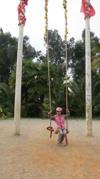 4月7日一大早 我们坐44路公交去民族村 1元钱一个人 90元的门票 进去了就后悔了 人也少 景区都是人工修建的 景致一般 很多民族都几乎没人 我们在蒙古包里把帽子胡乱戴着照了一通 东走走西逛逛就出来了 实在划不来 就那秋千还行