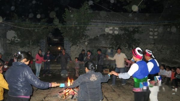 走到客栈附近,居然遇到白族一家在摆篝火会,嘿嘿,难得难得,老妈跟二爸都进去小试身手,少数民族的人就是能歌善舞,歌也挺好听的,虽然只是一首重复放,我们几个不跳的就站边边看,主人家还拿出板凳给我们坐.