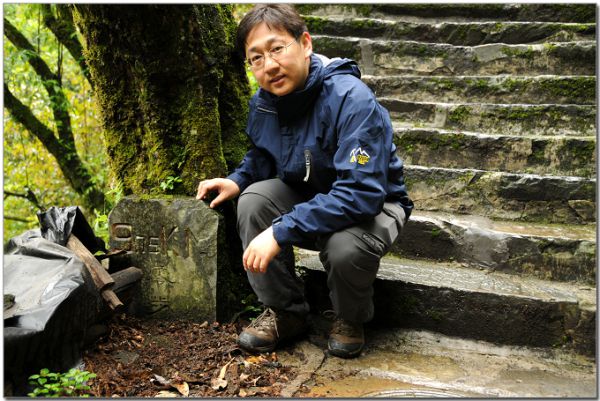 其实“零步”不是登山起点,要从鱼坳开始上200多级台阶才能到达“零步”,那标牌不大起眼,最可气的是,山民的房顶正好掩住半个标牌,加上落叶、阴雨,害得我上了400多级,觉得不对,又下来才找到,多走了200多,不过也罢,梵净山号称8000,其实7888,我多好,给补上了。零步的标牌是不能错过的,因为我曾梦到过它,梦中就是下面这个姿势,可能是因向往而神往了吧,哈哈。我想:零步,不只是登山的起点,也是终点,无论登到8000,还是1万,最终总要下山,回到零步。一如我们的人生,无论你拥有多少财富,无论你混到多高地位,却总也逃不过生老病死、由零到零的轮回。你说要是组织一帮贪官污吏来登山,他们会不会也误出点啥,算不算为社会做点贡献?还是算了吧,别玷污了一方净土。