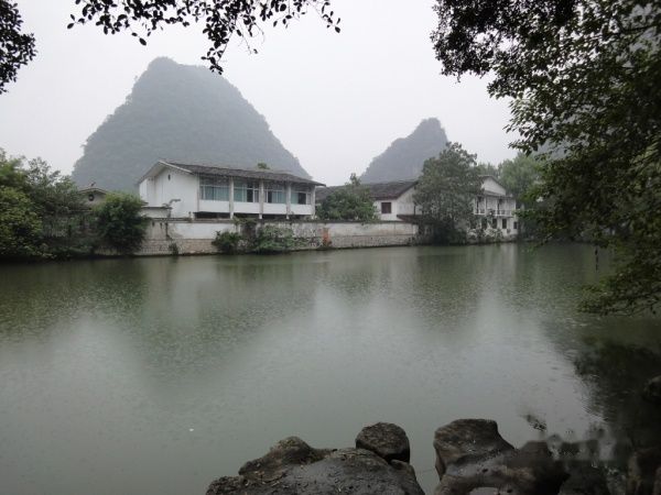第二天睡到自然醒,退房后就直奔火车站广场,那里有很多到阳朔的班车,一问到阳朔要18块钱,便冒充内行:我的朋友都说是15块的。那车主见忽悠不了偶,就同意15块钱了。一路的上落客,本该90分钟的车程搞得走了两个多小时才到,后来别人都说那种慢车到阳朔只要12元就可以了的,靠、还是给她忽悠了。出了车站,天下起毛毛细雨、望着旁边行色匆匆忙的赶路人,偶却在悠然的在雨中漫步观尝街景、雨中的阳朔别有一种诗意美景,朦朦胧胧 好像一幅山水画卷。