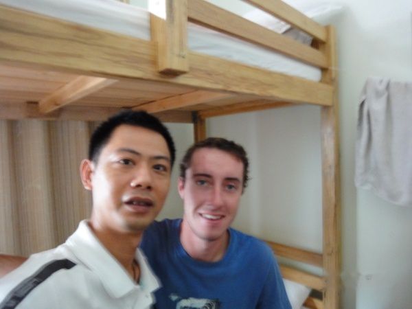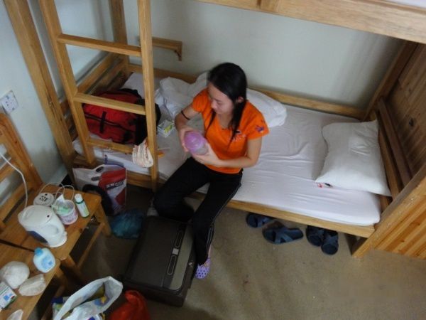 偶要了一个六人间床位,费用是每天35元。上到房间里,已经有个洋帅哥住在那里了,打过招呼、放好行囊。就下楼找吃的去。。。