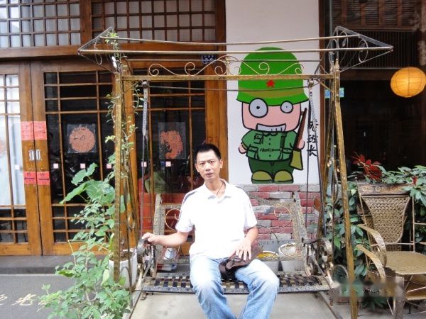 不知不觉中走到了网上看好的【老班长】国际青年旅舍,在办理入住手续的空隙间,看到门外如此精致的千秋,咋能不坐上去荡一阵?嘻嘻,秋风习习的吹,俺悠然的荡来荡去,哇、好爽啊!