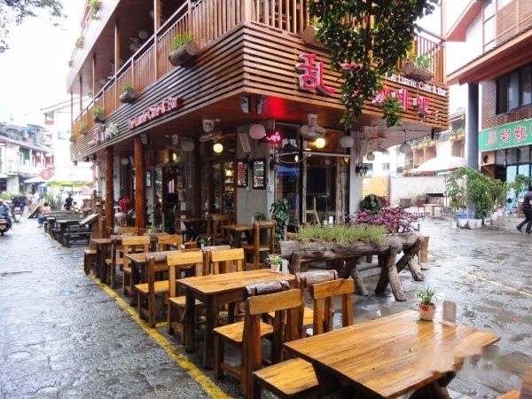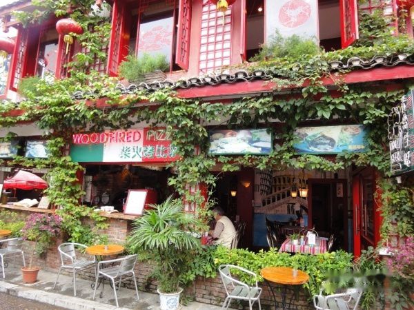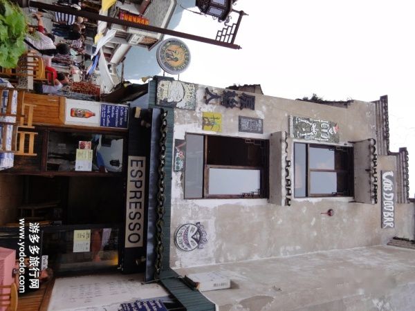 一边看着卖艺的洋鬼子、洋妞,一边看着如画的景色,不知不觉中走到了著名的西街,随着拥挤的人群逛进了街道,两旁边的古老店铺装修得非常古朴、好看,可里面卖的东西就和一般旅游景点卖的工艺品没有什么区别了,不值得买,更挑不起偶购买的欲望,所以走马观花的走了一趟,就转出入口处十字路口旁的另外一条酒吧街。