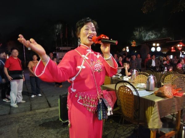 像不像传说中的刘三姐?人美、歌喉也甜,不时博得阵阵掌声和不少的人民币,哈哈---刘三姐也快成**了!