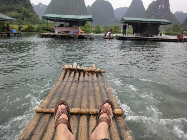 收拾好行囊,就骑着租来的单车直奔‘过龙河’去漂流。一路迷人的景色自然不必说了,由于偶是独往,不得不独自包一支竹筏,经讲价后100大洋成交。