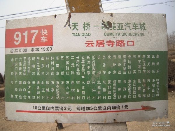 十几年前,开车去十渡玩返京时路过云居寺,由于时间关系,就没有进去。一晃就到了2012年,突然间就想去转转,近10点到北纬路917路公交总站,几乎没耽误一分钟,上车后立即就启动了。10点整汽车经过虎坊桥,行驶70分钟到达云居寺路口。