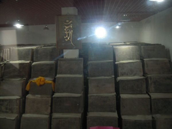 隔着玻璃窗可以看到一排排码列整齐的石经