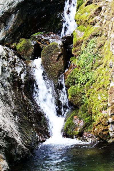 下午大约2点钟,我们翻过山梁,由栗峪山沟下山。路不如上山时好走,坡陡石多,枯枝荆棘,但一路有淙淙流水,烂漫山花相伴,时有瀑布小潭,小鸟鸣叫,也足以让人心旷神怡!