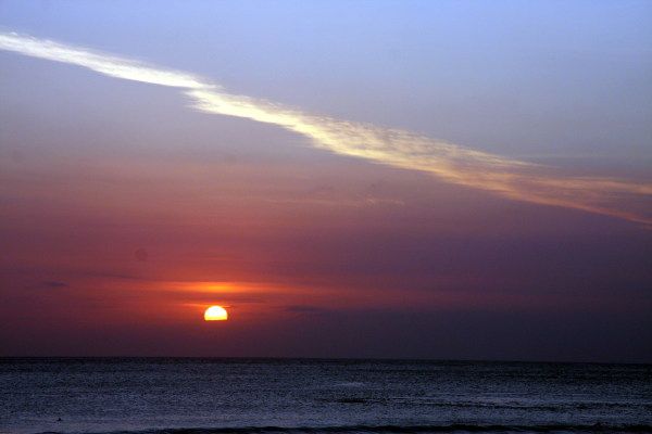 金巴兰离库塔地区不是很远,却是另个天地,很朴实的小渔村,很宁静,天色很兰,海水也兰。我们住的地方非常好,宁静、干净、美丽,出门就是海。夜晚这里是最美丽的,以海上落日著称。傍晚开始,整个海滩都是餐桌,点着蜡烛,适合恋人,不时有人来唱歌,不过要给小费。在这里吃饭只能求饱,如果你点大餐价格比较贵,还要另外的服务费和税。点个椰子,超大。一直可以喝到皎洁的月光下听着、看着海浪敲打着海岸。在金巴兰出海是个非常好的路线,可惜我们时间少了,取消这个计划。