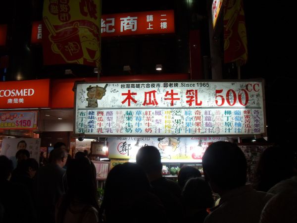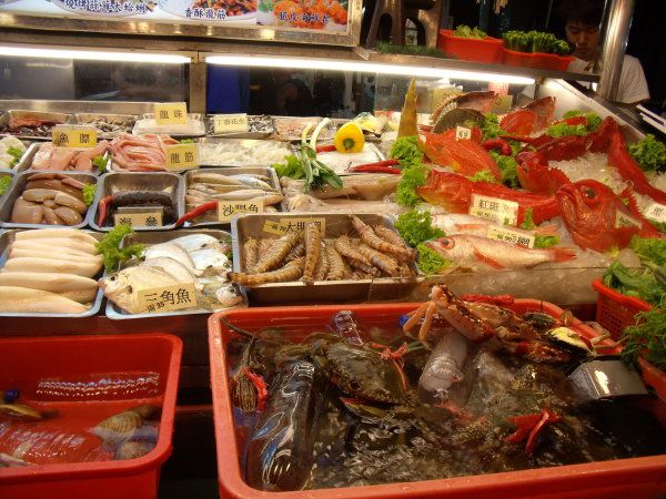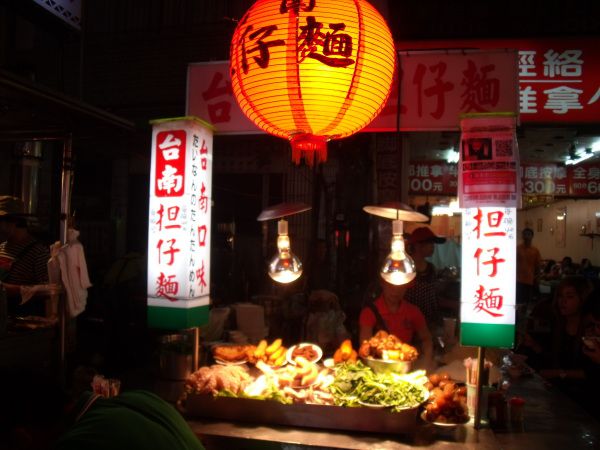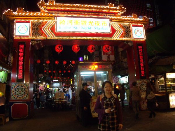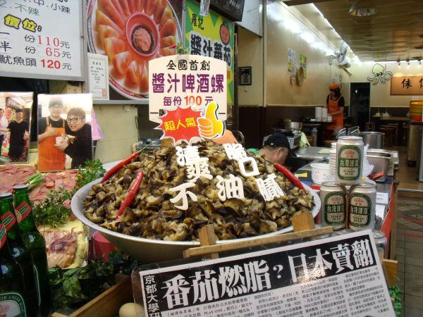 我们在三月二十六号经香港飞到台北,当晚就到台湾著名的夜市去了。虽然行前已从别人的游记上略知夜市的情况,但亲临其境还是赞叹有加,只恨广州怎么就没有这样的夜市呢?还有就要恨自己胃容量有限不能尽兴吃,不能大饱口腹也无所谓,总算是大饱了眼福的。夜市的卫生状况还算不错,食物摆放得七彩缤纷也令人食指大动。