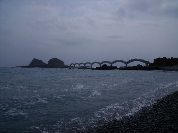 第六天经花莲到苏澳看到了久已闻名的海蚀奇景野柳国家地质公园。那些被不懈地冲击的神奇的海浪造就的礁石名叫烛台和仙女鞋,少女头,女王头,还有一块象中国版图,呵呵。。。。。比起那三仙台的三块大礁石就美妙神似多了。