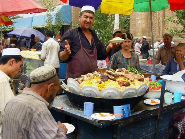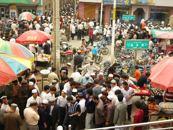 和田市内最值得一去的地方是大巴扎,星期日是巴扎日,据说从周边几个县来赶巴扎的人有10万余,规模超过喀什巴扎。和田市市郊的几个县的乡镇的巴扎也十分红火,且更具乡野气息,如和田县的巴格其镇周二巴扎、洛浦县的玉龙喀什镇的周三巴扎、和田市的拉斯奎镇周四巴扎,我的“飞毛腿”都曾“插足”其中。