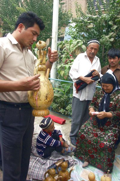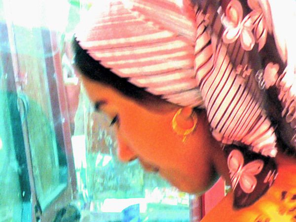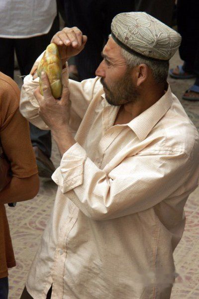就在玉石巴扎我见到了一位赛美玉的MM,天生丽质,用丝巾包着头遮着脸,只露出一双深邃的眸子。一会儿她的母亲来了,我才明白什么叫美人胚子。美人的妈就是美人,所以“青出于蓝,而胜于蓝”。呵呵,见了MM我就开始胡说了。