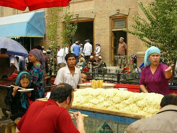 但是要说独具和田特色的巴扎,非星期五的和田玉石巴扎莫属了。每到星期五,人们早早地汇集到加买路,摆摊设点。卖玉石的、买玉石的、上清真寺做礼拜的、吃美食的、购物的、看热闹的、还有像我这样旅游的…絮絮嚷嚷的**把几条街塞满。我曾试图登高拍个玉石巴扎的全景,记录下这壮观的场面,始终没能找到“制高点”。