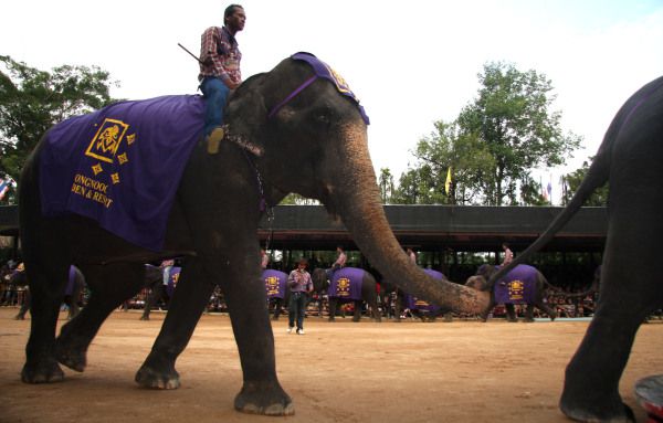游泰国第三天到达芭堤雅,白天游览动物园,观赏到许多盛产泰国的动物,象大象、鳄鱼、眼睛王蛇等。泰国也被称为“大象之邦”,大象是泰国吉祥物,尤其白象,因其稀少被供为圣象,其它大象用于劳作,而白象只作为圣象被供奉。这次的亲密接触的确使我感受到大象善解人意、勤劳能干、聪明灵性的美德,它吃苦耐劳协助人类劳作又是人类忠实的朋友。在表演场它们身披彩衣,表演了套圈、骑车、射气球、给观众按摩、画画、投球,呵呵,好不精彩!没想到看上去笨拙庞大的象会做出这些高难动作,它的憨态而又灵活的表演,让人捧腹大笑,惊叹不已,可爱极了,不由地喜欢上大象,大开眼界呀。 下面看看它们可爱的身影吧。