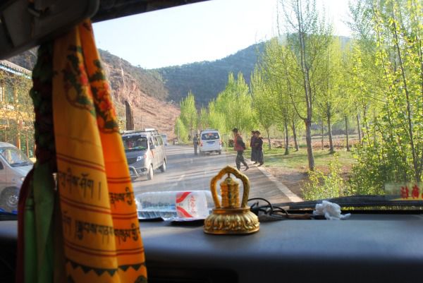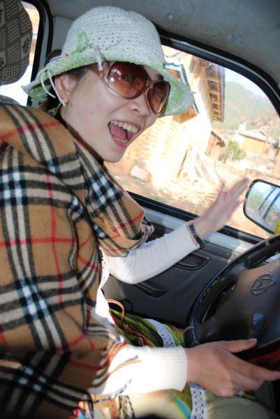 八点半杨师傅准时出现在了上火铺客栈门口,我们十个人大部队,所以是两辆车的环湖阵容。我们迅速冲上车等待即将开始的美好环湖之旅。可杨师傅还在交代着今天要到的一批客人,让大家颇感时光蹉跎。我当机立断,直接跳到了驾驶座发动了车,大家拍手叫好。只是这辆老爷车开起来并不轻松,离合与变速杆都不大听使唤,有点屈就了我这样的“大师傅”了。杨子同学正好坐在副驾驶座,果断地给我记录了这个光荣的时刻。