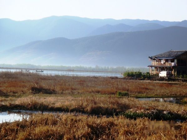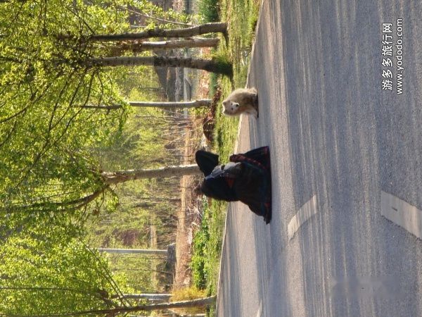 苹果树开满了细碎的粉白的花蕊,藏在枝叶间娇羞见人,淡淡的花香若有若无地撩拨人的鼻嗅。沿着山脚下的马路,柳树、榆树和樟树高大挺拔,总有穿戴鲜艳的摩梭姑娘结伴成行,她们的笑声在春风中清脆悦耳。不时还可以见到白色的玛尼堆,悬着风马旗和彩色经幡,青烟袅袅,两三个摩梭大娘转着经筒绕着玛尼堆诵经祈福,她们的神情静穆安详。泸沽湖的四月是静悠而温柔的,她慷慨地袒露出天然健康的美,任你笃悠悠的品味和体验大自然的生趣。