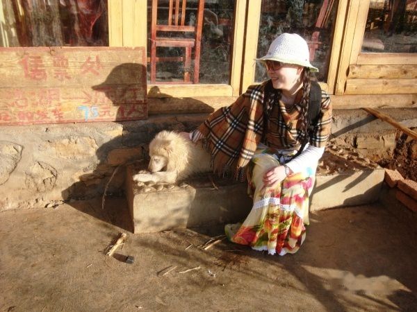 接下来是两个女孩繁琐的梳妆打扮,防晒霜涂了再涂,太阳帽太阳镜一个都不能少,直到最终出发与大部队会合。今天的早餐我们是在杨师傅家的餐厅吃的,馒头+稀饭+凉菜+鸡蛋,差强人意了,每人十元不含在房费里。早餐过后时间尚早,我和上火铺的“小管家”玩耍起来。