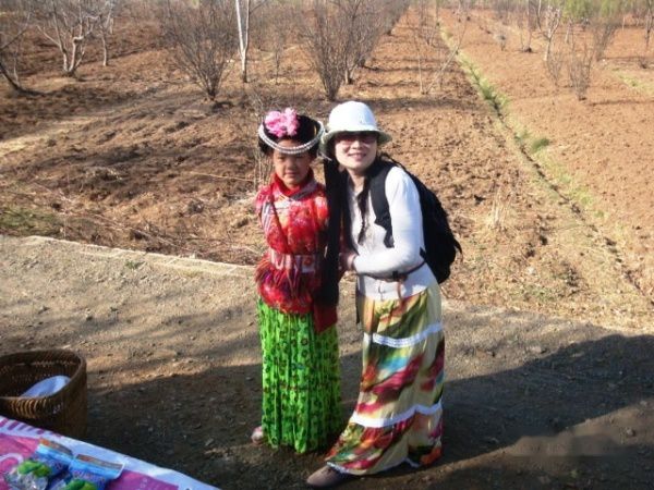 可爱的摩梭儿童推销着当地的特产——苹果干。这位身着盛装的女孩吸引了大家的眼球,不仅和她拍照留恋,还纷纷赏光消化了她的六袋苹果干。看着她灿烂的笑容,我们也特别开心。