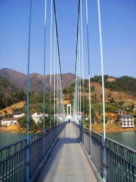 午饭过后,我们到村子里走走,虽然气温很低,但是彼此的心很暖,手很热。今天整个村子只有我们两个外来客,这是你我都崇尚的宁静,抛却烦恼,远离工作,一切宛如客居世外桃源。红花绿叶,青山绿水,这就是我心中的那幅画。湖面上的铁索桥是我最爱之物,不管从哪个角度都能看到它的婀娜,我就这样傻傻的走来走去,心随着它一起一摇一摆的激荡。回过头发现你在偷拍我,你说那样才叫自然。:)