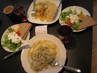 为了发挥城市卡的作用,我们这两个不爱博物馆的人,打算在斯德哥尔摩好好熏陶一下自己,今天去了著名的瓦萨战舰博物馆和北方民俗博物馆,要了解一下传说中的维京海盗的历史与生活呢!在此之前,乘着公车纵贯斯市,感受瑞典首都建筑的魅力。我们在65路末站下了车,吃了一顿几天以来最美味的午餐——某写字楼一层的自助式工作餐。