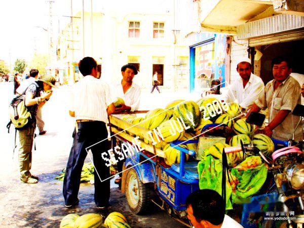 镜头三:吐鲁蕃,亚尔乡村道上,漂亮的维族妈妈带着更漂亮的少年和我擦肩,微笑,少年张口对我说:“how are u? what’s your name?”