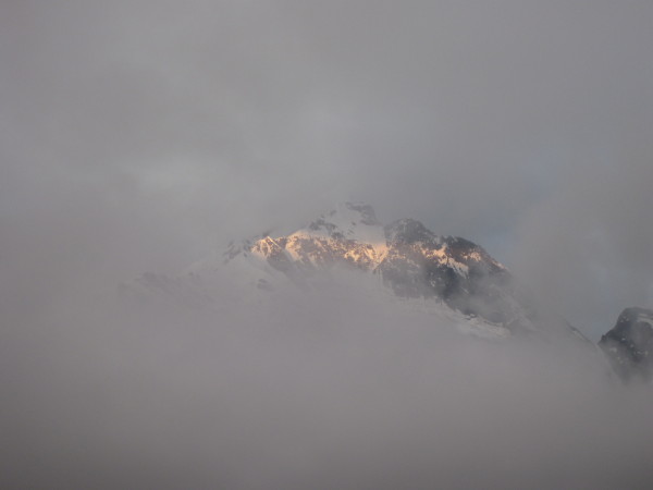 第二天早上很早就起来了,准备欣赏日照金山的美景。可惜早晨浓雾弥漫,云雾中金山或隐或现,不过正因为如此,却也增添了一股朦胧之感~
