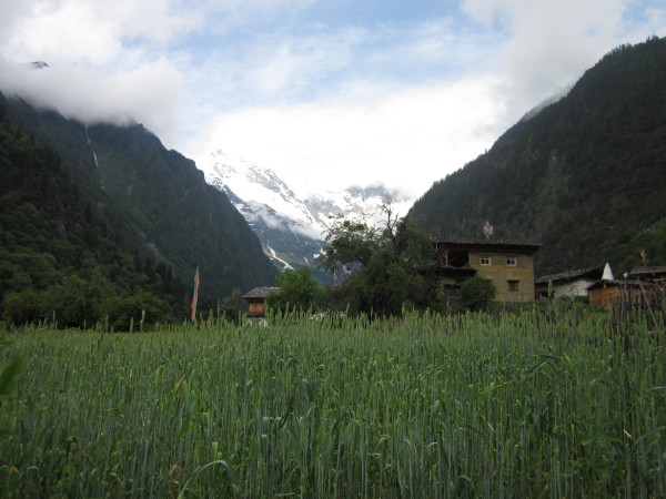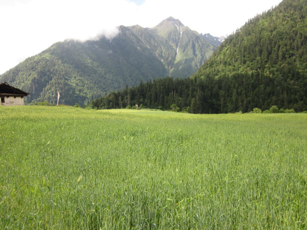雨崩,大片的青稞田