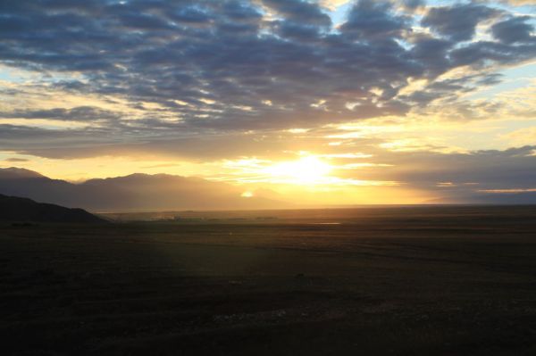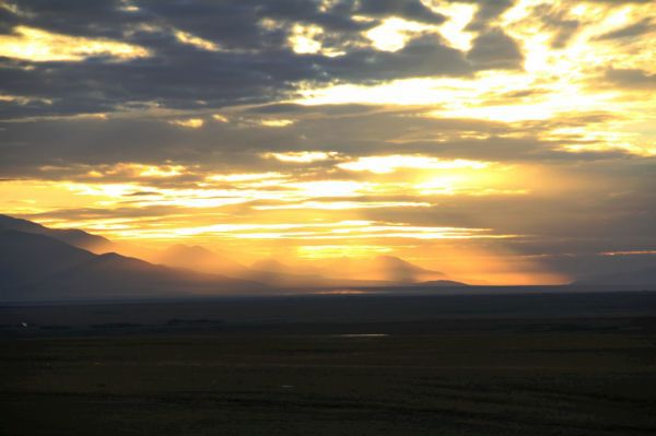 回再走烂路。但也不错,我们又看到了美丽的草原朝霞。