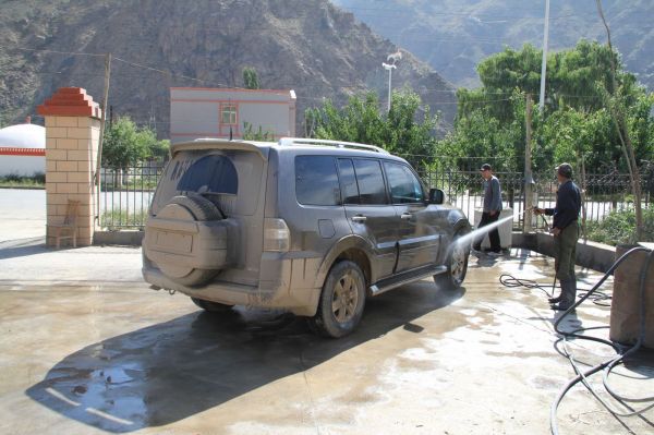 十一点半到达巴伦台,吃早饭,顺便洗车,在烂路上一路颠簸车没了模样,要进城了,不能