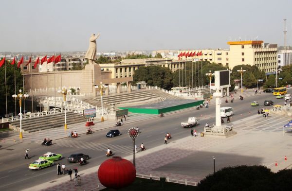 喀什的中心广场上依旧保留着毛主席塑像。毛主席挥手指引我们前进的方向。我们从那个时