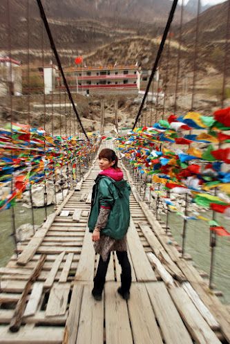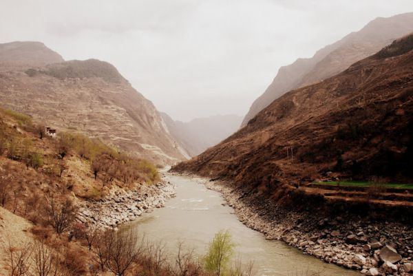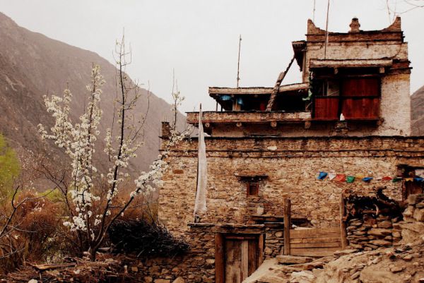 大渡河边公路一直走,过很恐怖的铁索旧桥,到那个村里,大概4公里。一路上可以看到美丽的梨花,桃花,3月的天,阳光明媚,穿着单衣开始出汗。