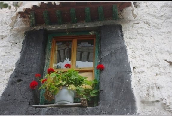窗台上的鲜花别有情趣