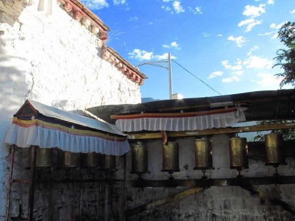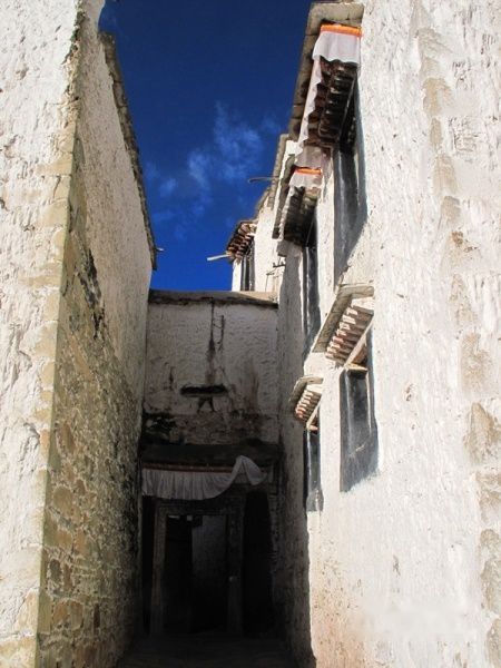 哲蚌寺的建筑远远不像布达拉做的那样紧凑,毕竟一个是皇家宫殿,一个只是宗喀巴大师的弟子所建寺庙。所以寒酸了很多,从铁皮做的转经轮、大量极其简易的土房、乱跑的牲口、舍内简陋的陈设就可以看出来。
