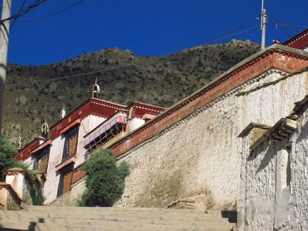 后面的铁架子就是雪顿节时的晒佛台,每年拉萨雪顿节期间,哲蚌寺要举行隆重的晒佛仪式。