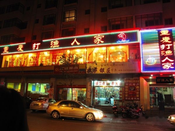 果然名不虚传,想不到在拉萨竟有这么大一块美食城,我们两辆车先后到了目的地,下了车竟然找不着对方,转悠了一大圈大家才汇合。美食城里东西南北菜应有尽有,最后还是决定在“重庆打渔人家”吃火锅。这一顿火锅味道算地道,几乎可与真正的重庆火锅媲美。