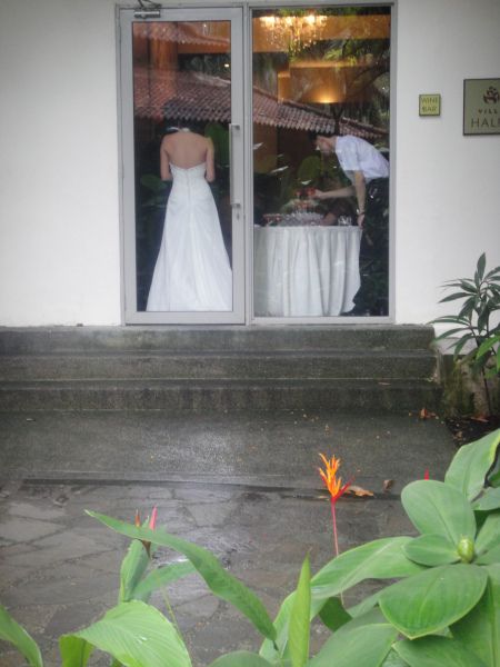 植物园里的酒店,新人一同倒满高高的香槟塔,新娘幸福的背影