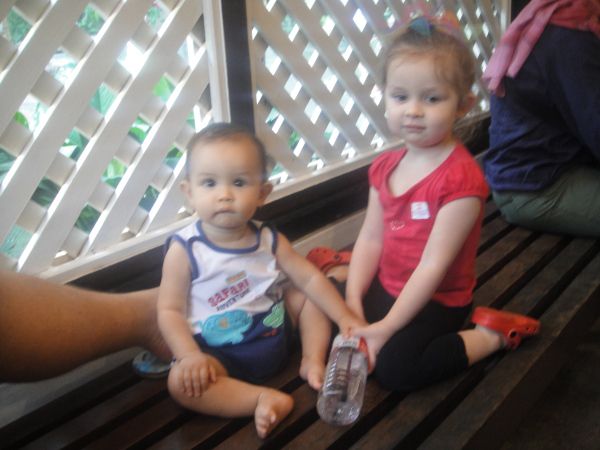 被大雨阻隔在植物园的休息室内,混血的姐弟俩争夺矿泉水瓶来消磨时间