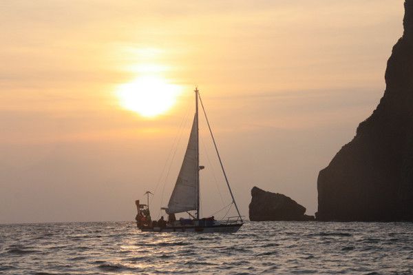第四站海上看日落:将近6点离开玛雅湾,我们坐在轻轻摇摆的船上,静静地看着太阳缓缓落入海里,是多么幸福的享受。坐在轻轻摇摆的船上,静静地看着太阳缓缓落入海里,是多么幸福的享受。坐在轻轻摇摆的船上,静静地看着太阳缓缓落入海里,海面不远处也有零星的船只共享日落,有长尾船有游艇有帆船,于是,看风景的人也成为彼此眼中的一道风景。