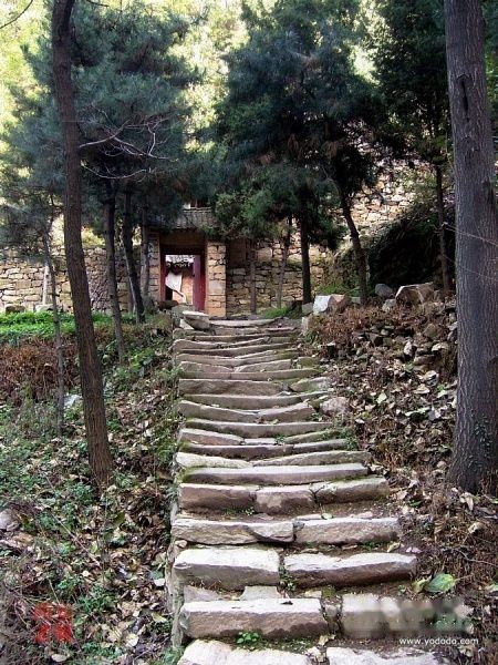 从戴顶向南的山势呈龙形,南至形似龙头的悬崖绝壁,称为“龙头”,中间有几百米长光滑窄小的一段山脊称为“龙背”,宽仅2—3米,最窄处几无一脚之长,两旁是如刀的悬崖峭壁。从戴顶的兴庆寺向南有一道小石门,远望看似路绝,近前才发现有一条石阶紧贴崖壁而建,向下直通龙背。是山民在山脊略靠下的地方用天然的石板搭起一条栈道,混凝土的条柱打进山体为支撑。栈道上的石板不是很稳,站在上面,山风吹过,微微晃动,仿佛驭风而行。缓缓移过“龙背”登上“龙头”,隔着深渊眺望,西南面是雪瓦山顶峰,青灰色的山崖壁立万仞,雄峙在秦岭群峰之间,如一幅大写意的国画;北面是一峰突起的戴顶,石块垒砌的兴庆寺主殿,在龙头的位置看是如此的渺小。俯瞰对面有座稍低的山头,峭壁上天成一石台,台上有座小屋似临空而建,飘飘若凌虚。据当地人说,这个小屋就是当年虚云法师修炼之所。
