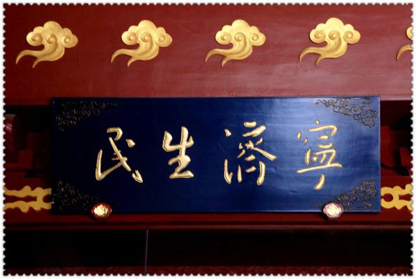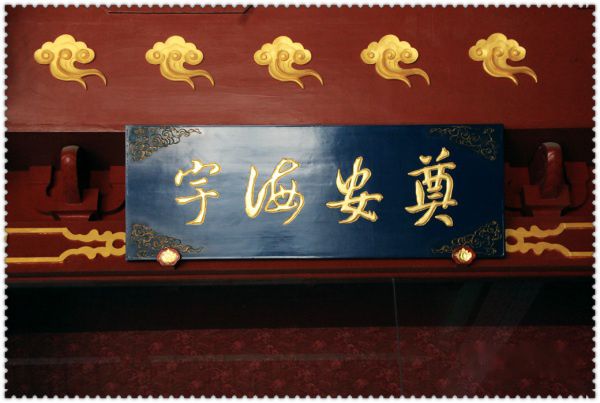 环顾四周,殿中还有乾隆撰楹联:“绩奠九州垂万世,统承二帝首三王”。启功集唐诗句、赵朴初撰写的楹联也在殿中。