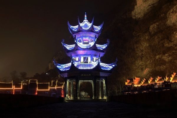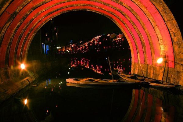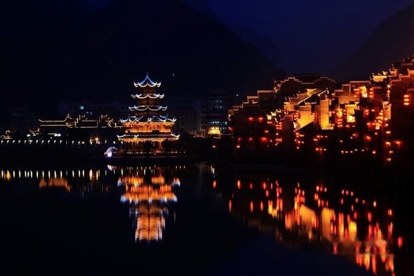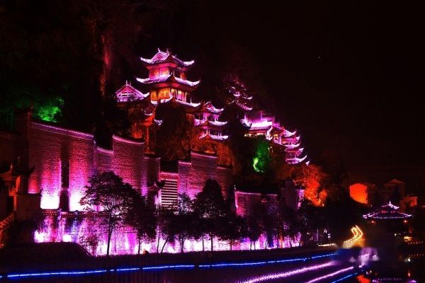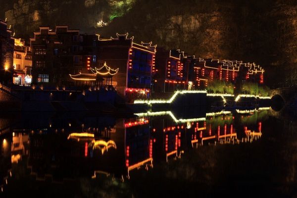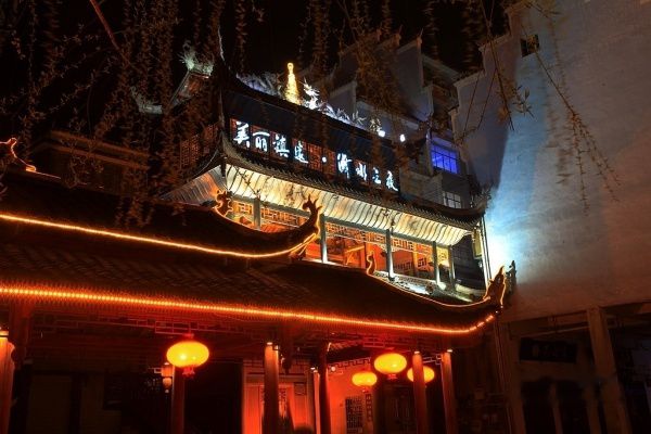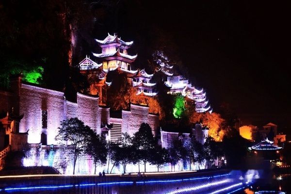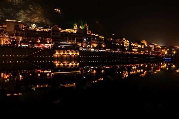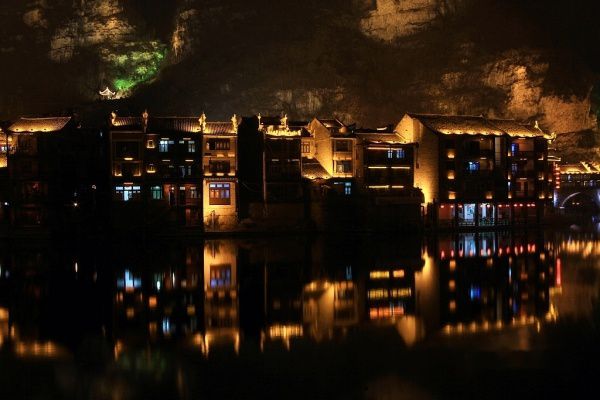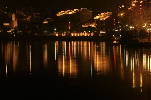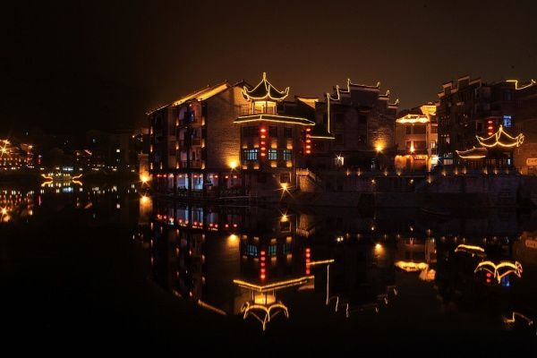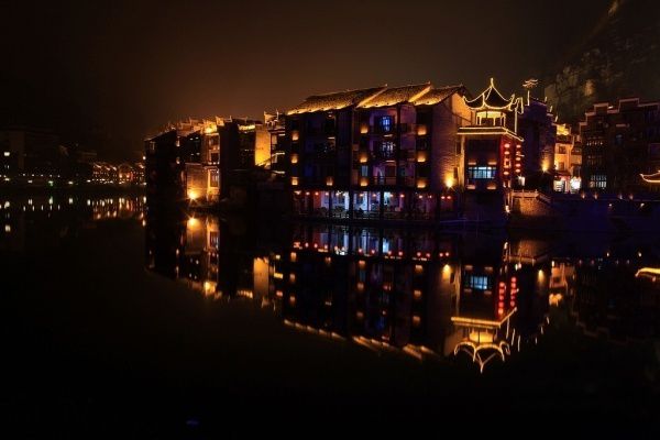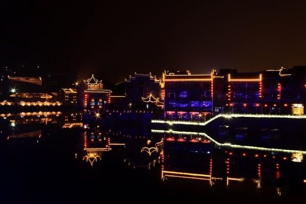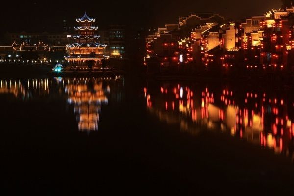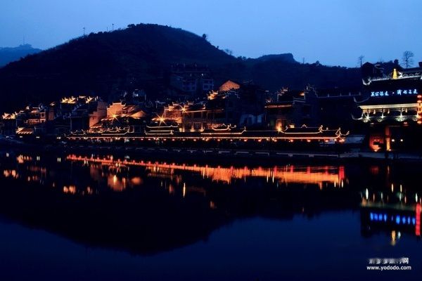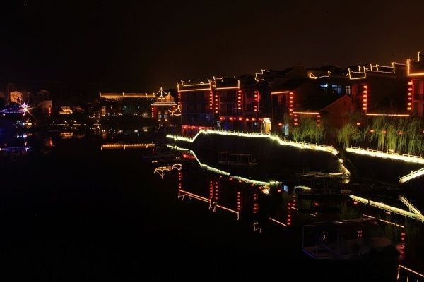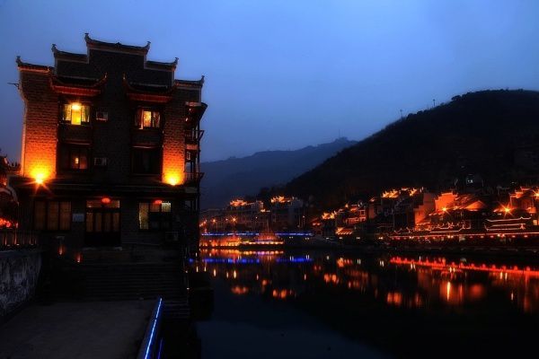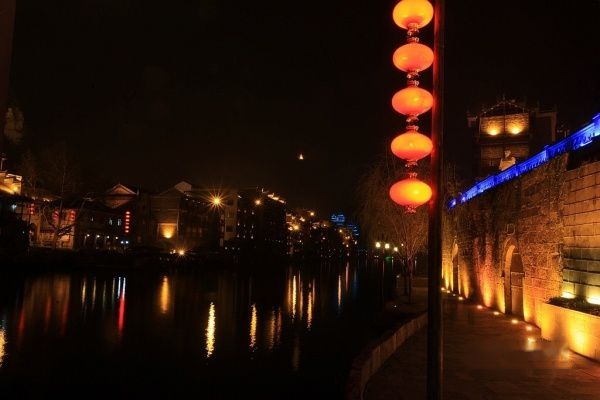 当夕阳收尽最后一抹余晖,古城就像洞房花烛的娇娘:羞涩的面容映红了舞水,温柔的目光就像盏盏灯火,勾勒出灿若童话世界的城廓,让古镇霎时妩媚起来。