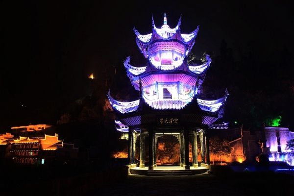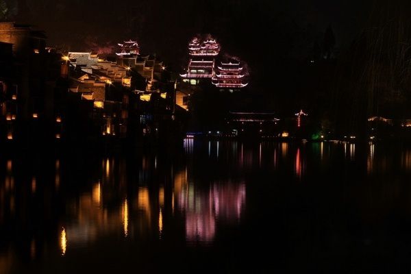 古城热闹起来了。各色行人仿佛从地上冒出来的泉水,叮咚悦耳。再一细看,有苗女的银饰叮当作响,有侗妹的绣衣熠熠生辉,有勤劳的古城人摆弄着各色商铺……这样的夜晚,古城让思绪天马行空。